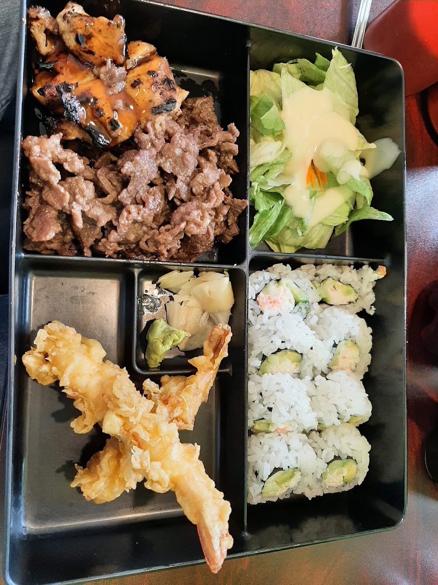 Busy with a short wait. Staff are super friendly. Food was hot, fresh, and tasty. Most dishes/rolls are $15 and up. Tried the bed and chicken teriyaki, pork yakisoba, and eggrolls. Will come back.
